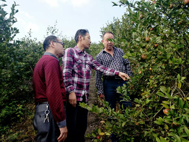 10月22日,生物工程学院汪祖礼院长、冯律君副院长、农艺教研室陈海霞主任、阮长海副教授受通山县石玲曹油茶种植专业合作社的邀请,就油茶种植过程中落果问题、整形修剪技术进行技术指导。