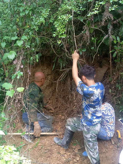 指导大徒弟(华檀)进行柏树桩景嫁接技艺