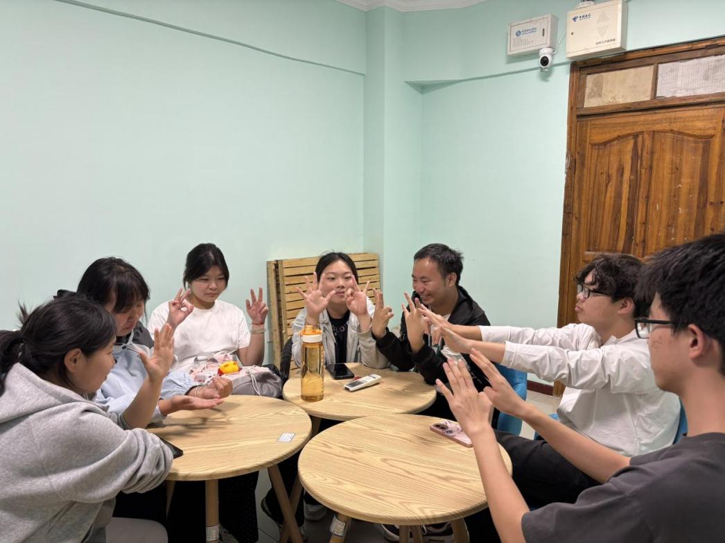 图2: “手指真心话”互动现场,同学们在趣味游戏中分享心声、拉近距离