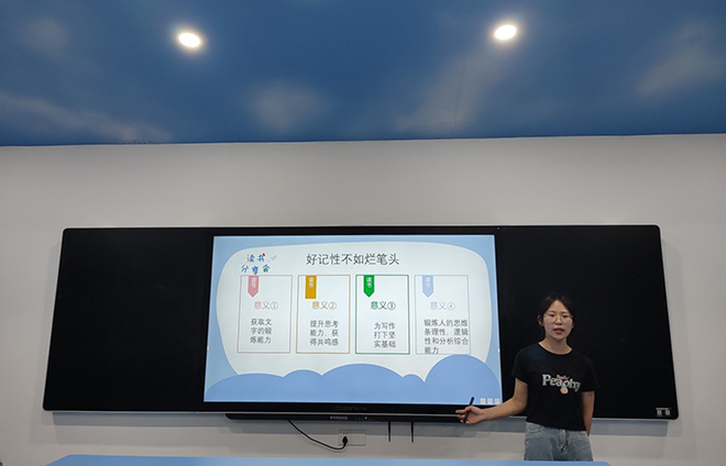 书香故事分享会通过选拔,最终8位选手进入当晚的决赛。他们做了精彩的展示,围绕主题分享了自己最喜欢的书籍,并用幽默风趣的语言讲述自己对书中故事的独到见解。黄梦玲分享了《华为管理法》的狼性文化;王凡凡同学分享了《月亮与三便士》的现实与梦想;李小雪同学分享了《云边有个小卖部》中刘十三的孤独和无奈;张惜栋同学分享了《三国演义》中东汉末年中各路诸侯争夺天下的雄心壮志;胡希翔同学分享了《西游记》里唐僧师徒四人相互配合度过八十一难的团队精神;项燕同学分享了《从你的全世界路过》中主人公敢干、敢做的人生态度;吕道武同学分享了《追风筝的人》中的后悔与改变;王雪梅分享了《情书》中纯真的爱情故事。经过激烈的角逐,最终评选出表现最优秀的四名同学。