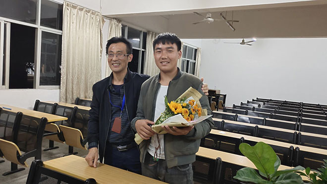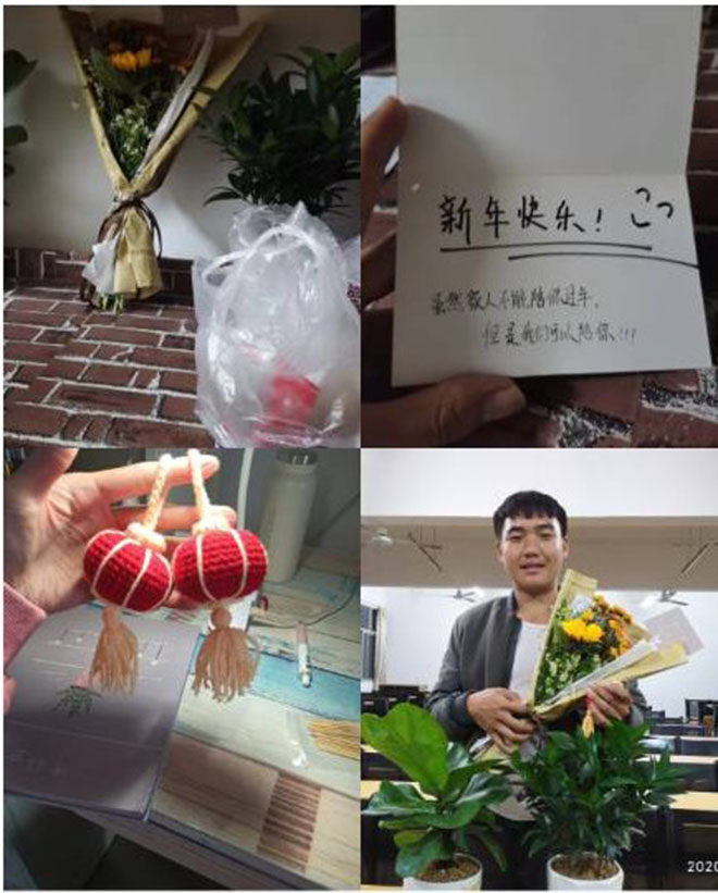 灯光熄灭,全体同学一起高声祝福:新年快乐!随后学生代表给彝族新生送礼物:向日葵花束,代表向阳而生,永远热情洋溢活泼开朗;竹柏,象征四季常绿如竹如柏,祝福彝族新生如竹柏一样终岁常端正,做竹柏少年;琴叶榕,寓意吉祥如意,万事胜意,平安喜乐;手织灯笼,代表团圆,象征五十六个民族一家亲。彝族新生被生物工程学院的热情和细心感动了!