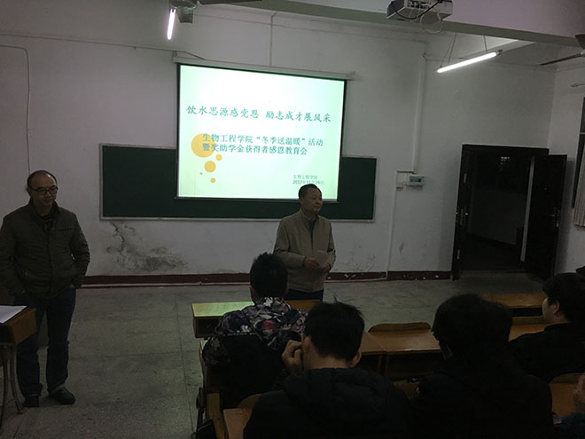为了充分体现学校对家庭特别困难家庭学生的关心,根据学校安排部署,2017年12月11日晚,万齐元副校长及生物工程学院党总支书记万平、副院长胡美勇带领辅导员深入学生宿舍,开展了“咸宁职业技术学院2017年冬季送温暖活动”。