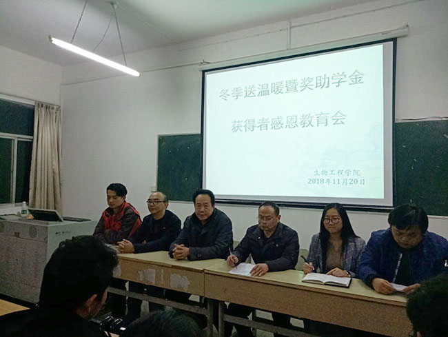 ——生物工程学院开展感恩教育活动 11月20日晚六点半,生物楼204开展了“冬季送温暖”活动。出席本次活动的领导有:咸宁职业技术学院副校长万齐元,生物工程学院院长汪祖礼,分管学生副院长胡美勇,学生科科长徐亮,团...