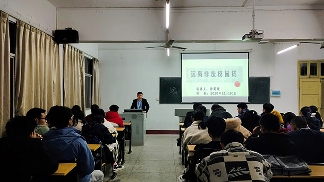 为了加强新生防骗意识,提倡理性消费的生活理念,构建安全和谐校园,我院于12月2日在生物楼204开展了“远离非法校园贷”的主题班会,新生辅导员徐亮、徐群刚主持班会,全体20级新生参与。 徐老师介绍校园贷危害 此次...